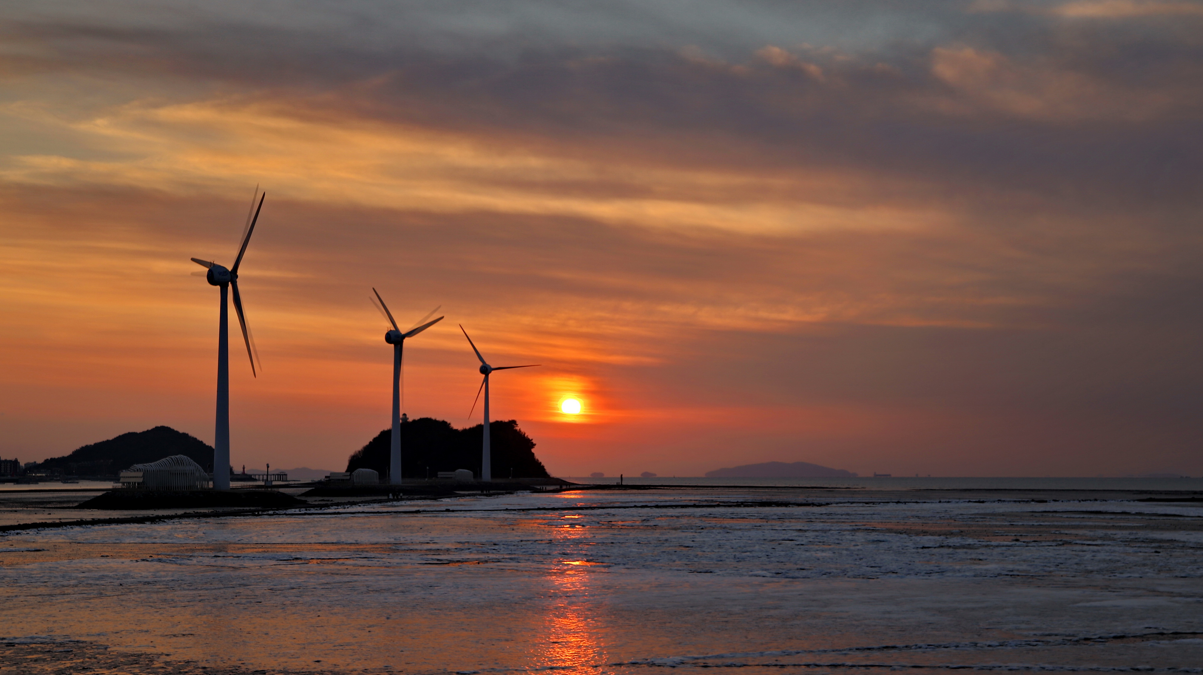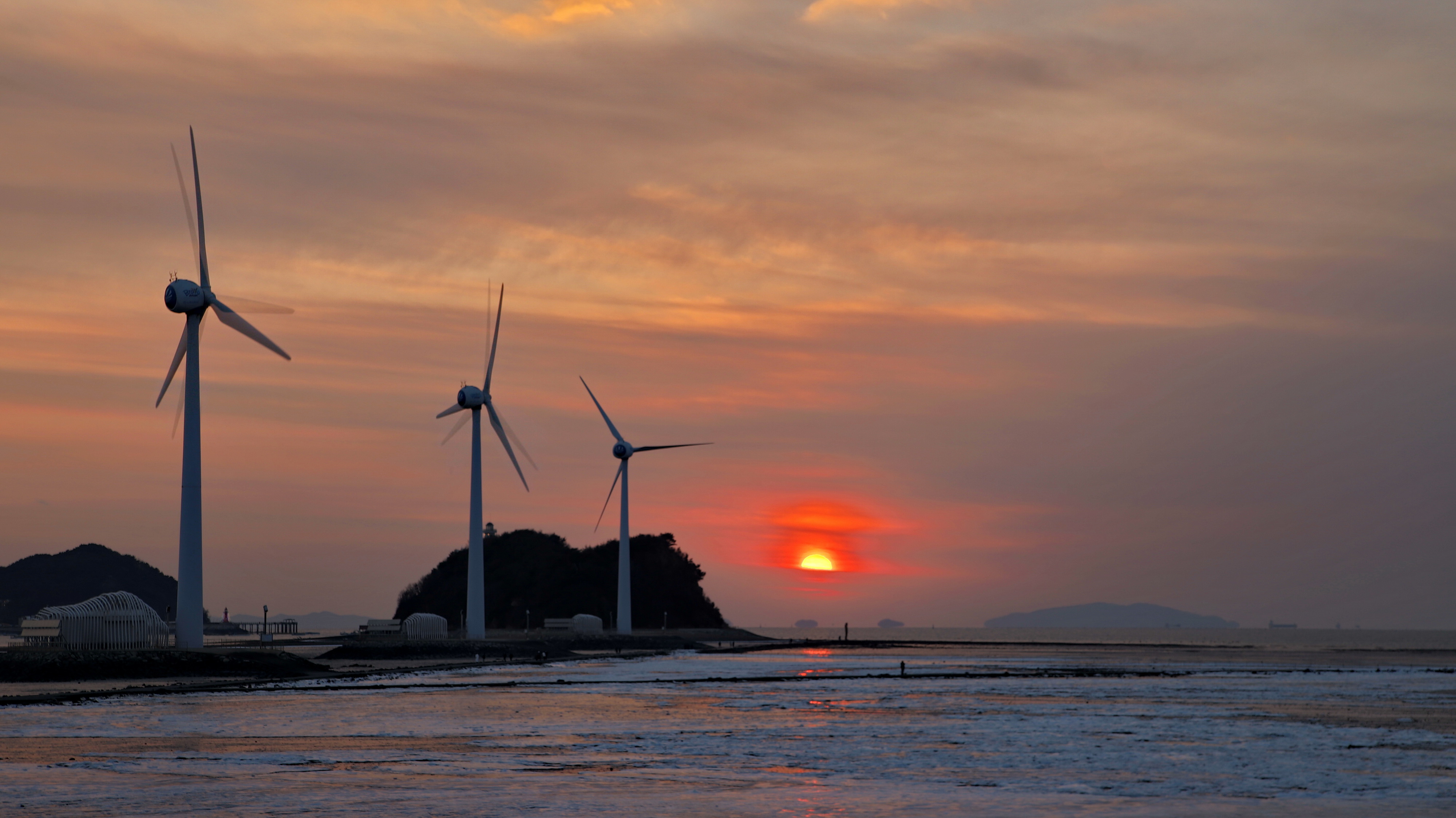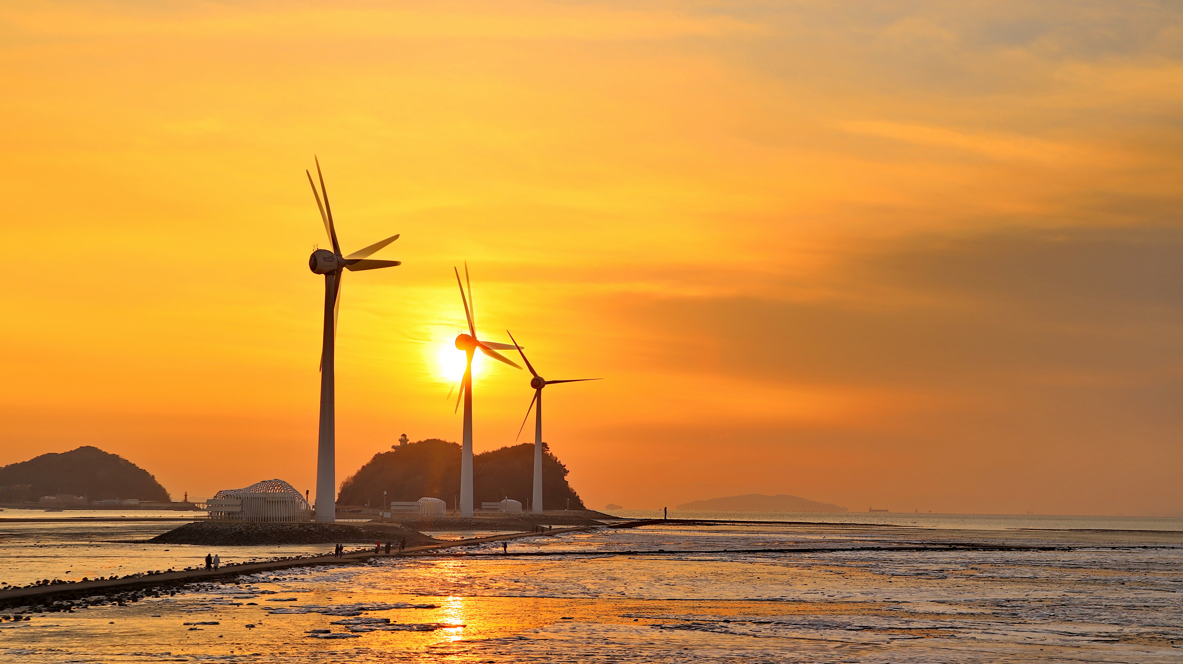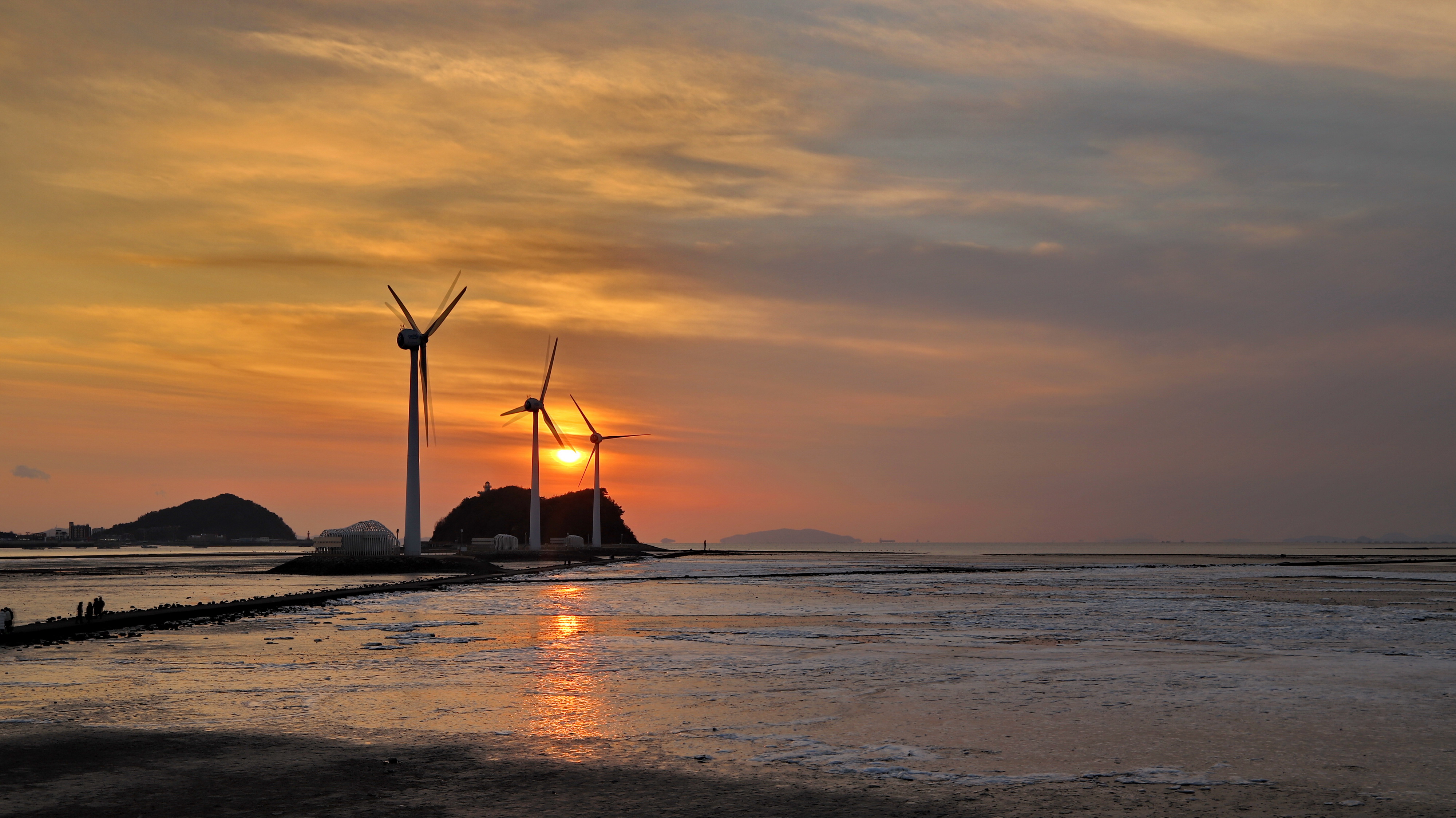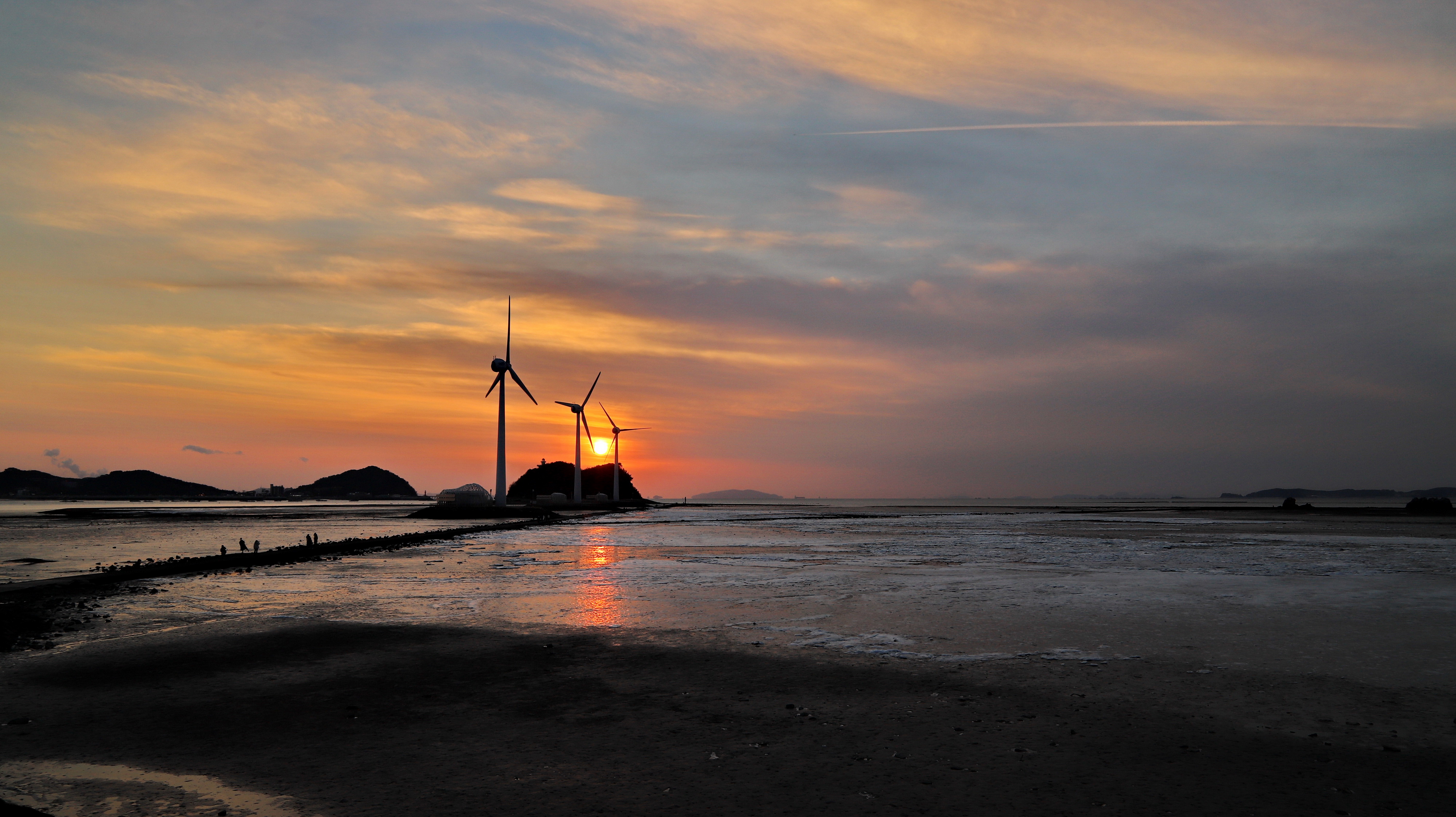 추운 날씨임에도 불구하고 일몰을 보기 위해 많은 분들이 바닷물이 빠진 누에섬을 걸어가고 있습니다